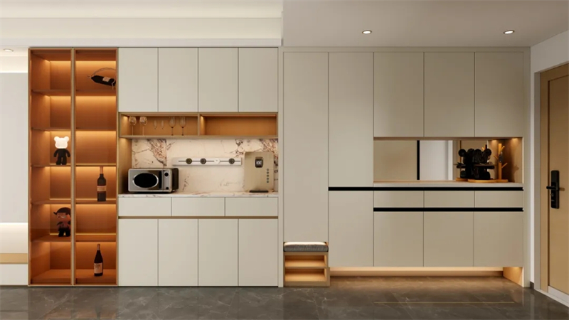 餐邊柜與玄關(guān)柜、電視柜一體設(shè)計(jì)