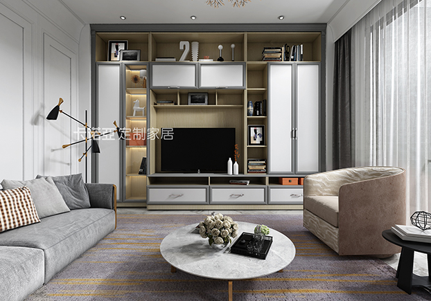 客廳的色調(diào)以白色為主,灰色、深木色作為點(diǎn)綴,各種顏色在明暗上形成對比,使空間不會(huì)過于蒼白。