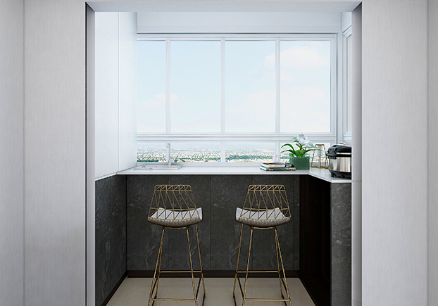 陽(yáng)臺(tái)變身吧臺(tái),窗外陽(yáng)光正好,微風(fēng)不燥,和朋友喝喝酒、聊聊天,談?wù)勅松硐?,似乎是個(gè)不錯(cuò)的選擇。
