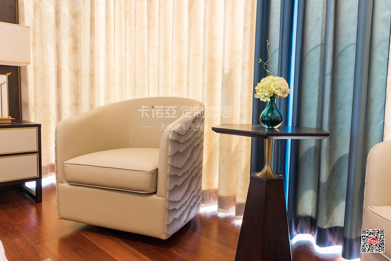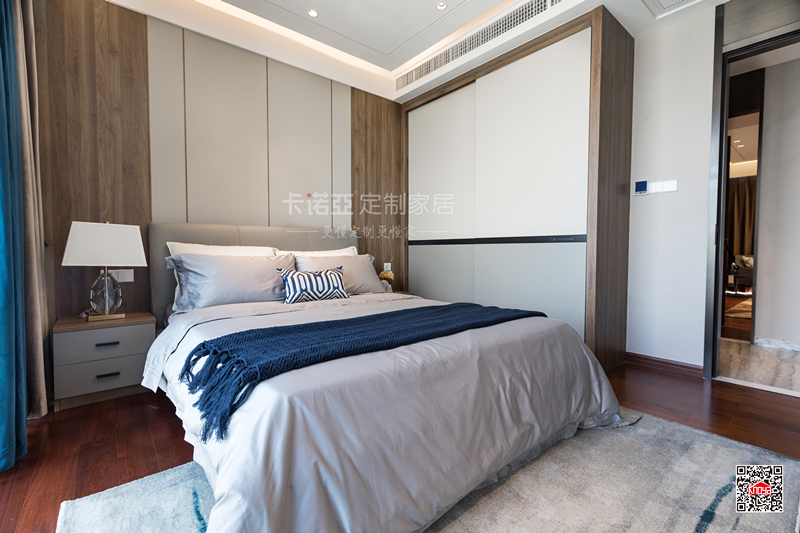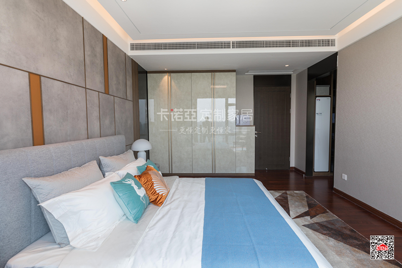雖然主調(diào)是簡(jiǎn)約風(fēng),但是臥房整體自帶奢華感。