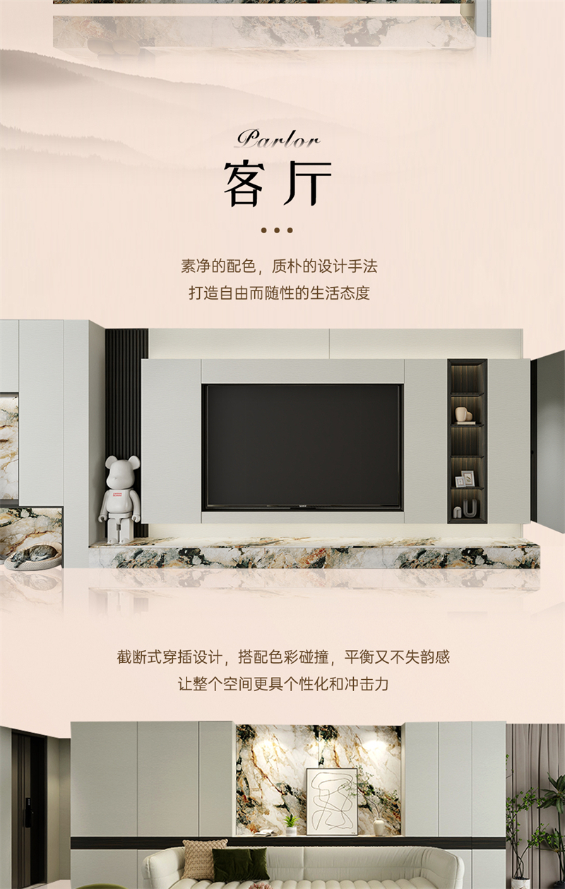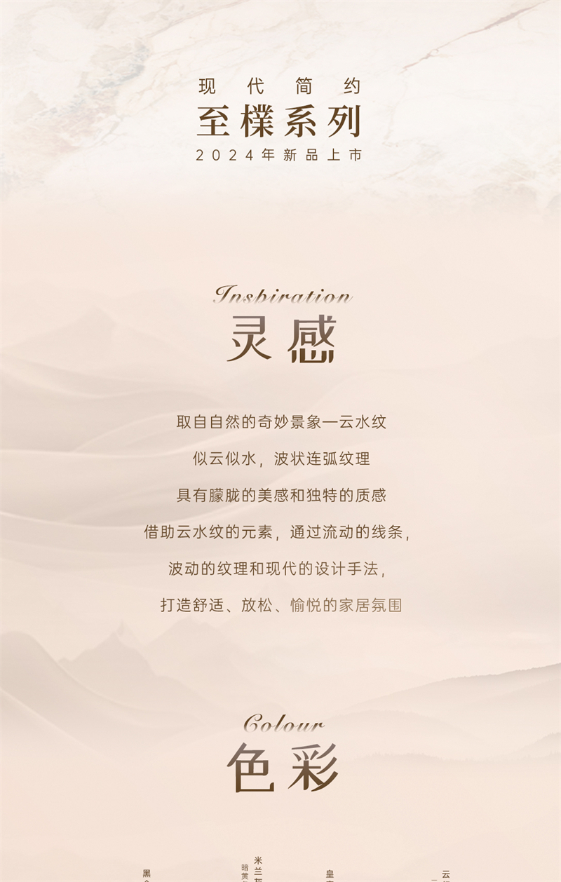 2024年新品系列,至檏 |現(xiàn)代簡(jiǎn)約風(fēng)格 借助云水紋的元素,通過(guò)流動(dòng)的線條,波動(dòng)的紋理和現(xiàn)代的設(shè)計(jì)手法,打造舒適、放松、愉悅的家居氛圍。