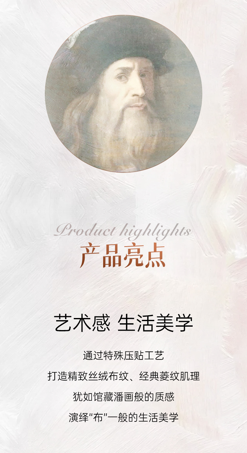 卡納系列 | 現(xiàn)代簡(jiǎn)約風(fēng)格通過(guò)特殊壓貼工藝,打造精致絲絨布紋、經(jīng)典菱紋肌理,猶如館藏潘畫(huà)般的質(zhì)感,演繹“布”一般的生活美學(xué)