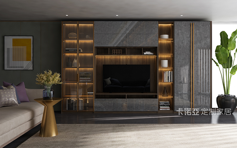 輕奢格調(diào)的客廳給人以低調(diào)奢華的簡約感,深色木紋肌理的電視柜定調(diào)了自然溫潤、質(zhì)樸真實的舒適感。簡約茶幾與空間保持統(tǒng)一格調(diào),疏密有致,調(diào)節(jié)空間節(jié)奏感,使客廳和諧有序。
