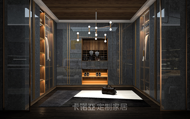 折疊區(qū)、換季區(qū)、懸掛區(qū)、首飾置放區(qū)分區(qū)明確,一眼便能找到要用的衣物,提高穿戴效率?,m瑯淺灰的主調(diào),暖色調(diào)格子點綴其間,讓整個空間寬敞明亮、溫暖溫馨。