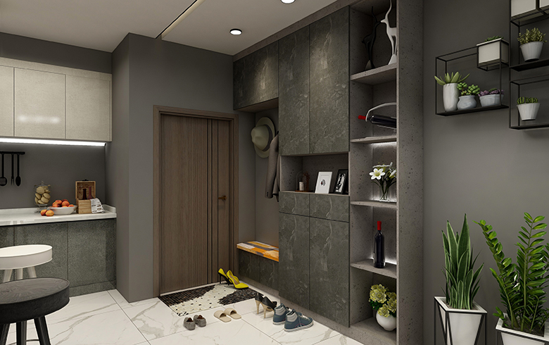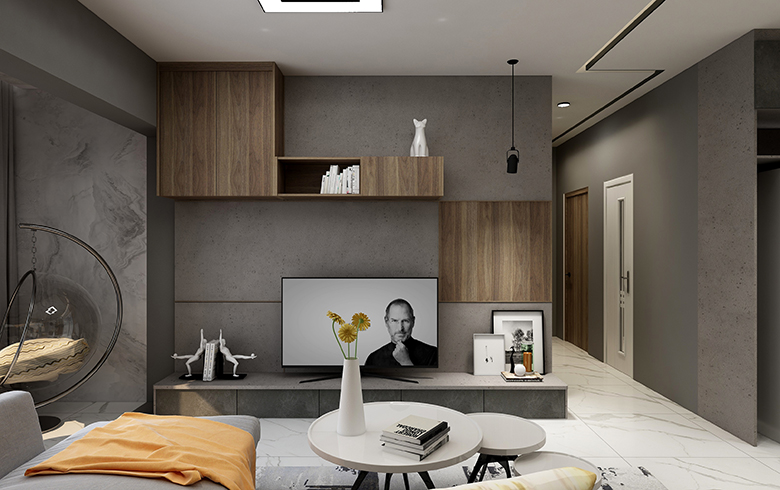 以黑白灰為主體色,的極簡風(fēng)格家居設(shè)計(jì),配上一部分深色木紋,緩和空間色調(diào)。凸顯出簡約而不簡單的現(xiàn)代簡約風(fēng)格設(shè)計(jì)。