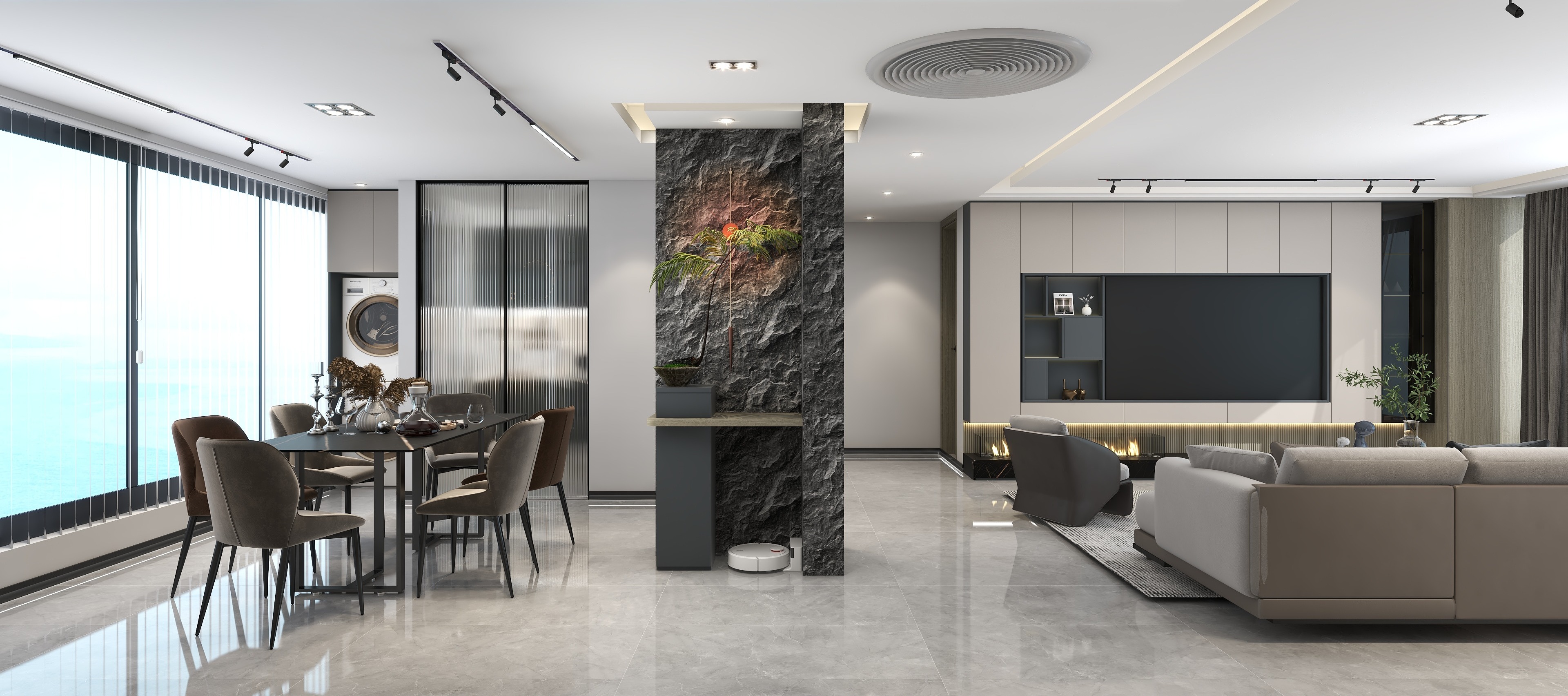 《櫟白》本案是四口之家,有三歲的孩子和老人,設(shè)計(jì)師根據(jù)每個(gè)人的需求與習(xí)慣重新規(guī)劃了空間,保留了三個(gè)房間,整體色調(diào)運(yùn)用了莫蘭迪的配色靈感,卡諾亞主要打造的是柜、墻、門(mén)一體化設(shè)計(jì),同色系的高顏值整家,整體以收納娛樂(lè)生活為一體,以靈活互動(dòng)與自由開(kāi)放為主旨,適當(dāng)?shù)牧舭?,?yōu)化細(xì)節(jié),衍生個(gè)性,締造出視野闊朗的簡(jiǎn)約格調(diào)。