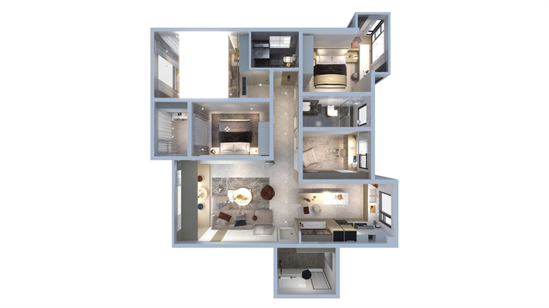 本作品是為解決一家人的生活需求所創(chuàng)作。作者希望在紛擾的世界有每個人都有屬于自己的一方天地,讓家的意義更明顯。讓房間產(chǎn)生溫度的不僅是收納,功能,顏值,還有對生活和家的熱愛。設計理念:顏值即是正義,以形式表現(xiàn)空間,形式追隨功能,超越功能。整家之美|第五屆卡諾亞杯全國家居空間設計大賽