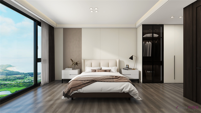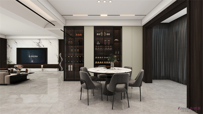 設(shè)計(jì)方案是一個(gè)意式簡(jiǎn)約風(fēng)的大平層,門板材料主要是以水性漆為主,客廳空間因?yàn)楦脑旌罂缍缺容^大,光線比較好,所以我們采用部分深色的墻面來搭配淺灰色的地板,讓空間大氣不失沉穩(wěn)。