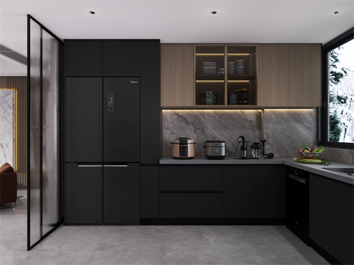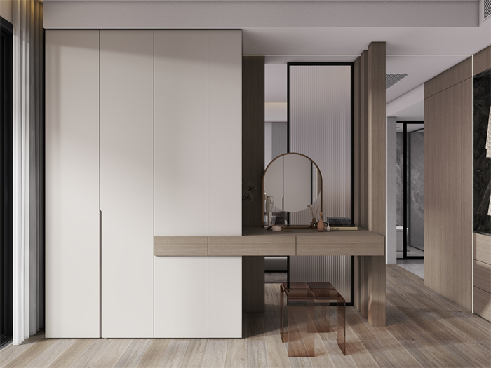 家具選擇上,以簡約現(xiàn)代風(fēng)格的家具為主,注重舒適度和功能性。軟裝細節(jié)上,采用柔和的色彩和材質(zhì)。廚房注重實用性和便利性,采用嵌入式收納設(shè)計,最大化利用空間,營造一個干凈整潔的烹飪區(qū)域。臥室以舒適為設(shè)計重點,采用柔和的色調(diào)和舒適的床品,營造令人放松的休息空間。充分利用儲物空間保持整潔有序。