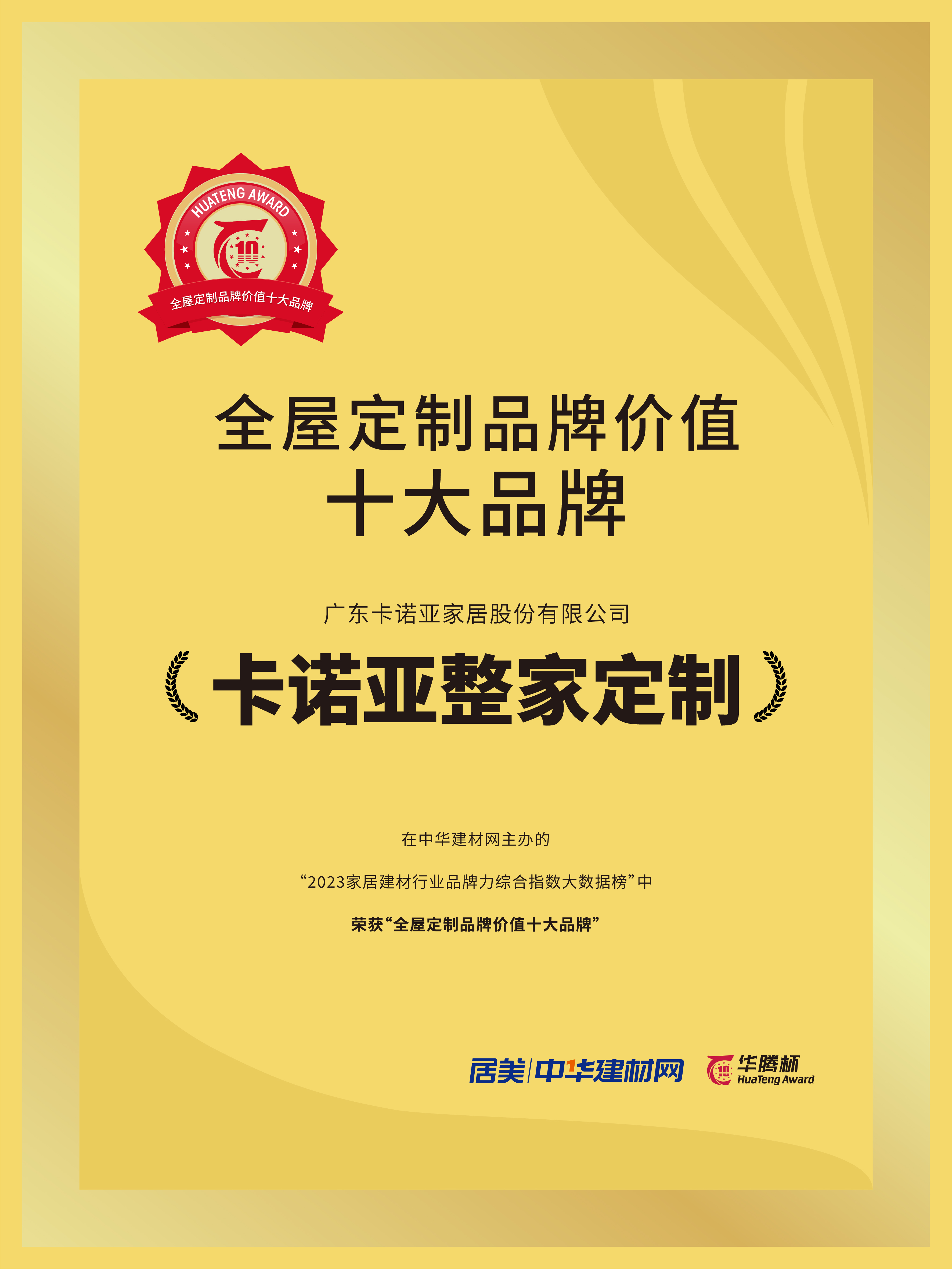 近日,在中華建材網(wǎng)主辦的“2023家居建材行業(yè)品牌力綜合指數(shù)大數(shù)據(jù)榜”中,經(jīng)過激烈角逐,卡諾亞憑借專注定制家居22年的品牌實(shí)力、業(yè)界的廣泛認(rèn)可及良好的市場口碑,眾望所歸榮膺“全屋定制品牌價(jià)值十大品牌”的殊榮。