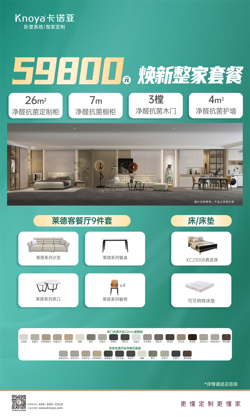隨著國(guó)家新一輪“以舊換新”政策的深入推進(jìn),家居市場(chǎng)迎來(lái)新一輪消費(fèi)熱潮。315消費(fèi)者權(quán)益日+國(guó)補(bǔ)政策+品牌優(yōu)惠的三重加持下,成為消費(fèi)者更新家居、提升生活品質(zhì)的絕佳時(shí)機(jī)。卡諾亞響應(yīng)政策號(hào)召,于3月1日-31日開(kāi)展“煥新 315·國(guó)補(bǔ)更優(yōu)惠--政企雙補(bǔ)至高 20%”鉅惠活動(dòng),重磅推出59800元全屋升級(jí)凈醛抗菌家套餐、108000元全案整家套餐及系列臥室系統(tǒng)套餐,專為追求品質(zhì)生活和改善型家裝的業(yè)主量身定制,為其提供更高端產(chǎn)品、更多大品牌、更高階體驗(yàn),以更優(yōu)配的全案家居智能生活場(chǎng)景解決方案,輕松實(shí)現(xiàn)其家居煥新夢(mèng)。