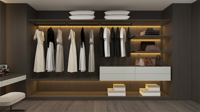 衣帽間以極簡疏闊布局,楓沙木、生椰灰與榛果咖搭配,讓衣物、鞋子被溫柔對待,挑選穿搭成了 “欣賞小確幸” 的過程。羅亞全屋定制用 C 調(diào)系列證明:好的定制讓家與生活同頻,其 “懂設(shè)計,有顏值” 的背后,是對年輕人生活態(tài)度的尊重與品質(zhì)的堅守。