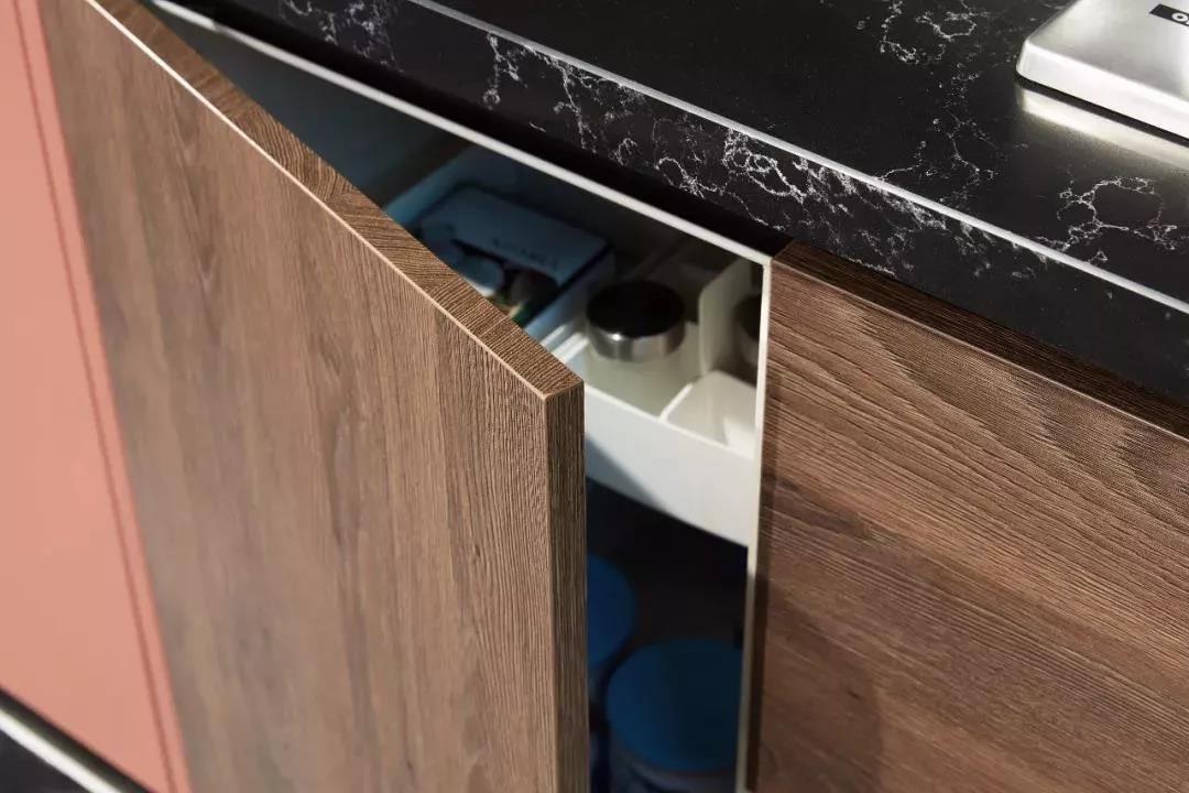 作為櫥柜的顏值擔當,選柜門主要看造型,然后看封邊。不管哪種材質(zhì),封邊處理好,柜門才不會有受潮的可能。