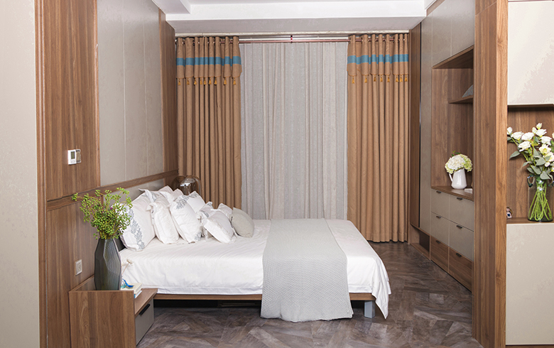 卡諾亞丨都市閑情·臥房開啟繁忙的都市生活,從睡一個好覺開始!大面積的護墻系統(tǒng)使用,冬暖夏涼、吸音減噪、防潮吸濕。運用時尚豎紋線條,護墻系統(tǒng)與墻等寬色塊設計,讓人備受呵護,更具安全感。深色木紋與淺灰搭配使用,寧靜的色調中賦予臥房別樣的靜謐。