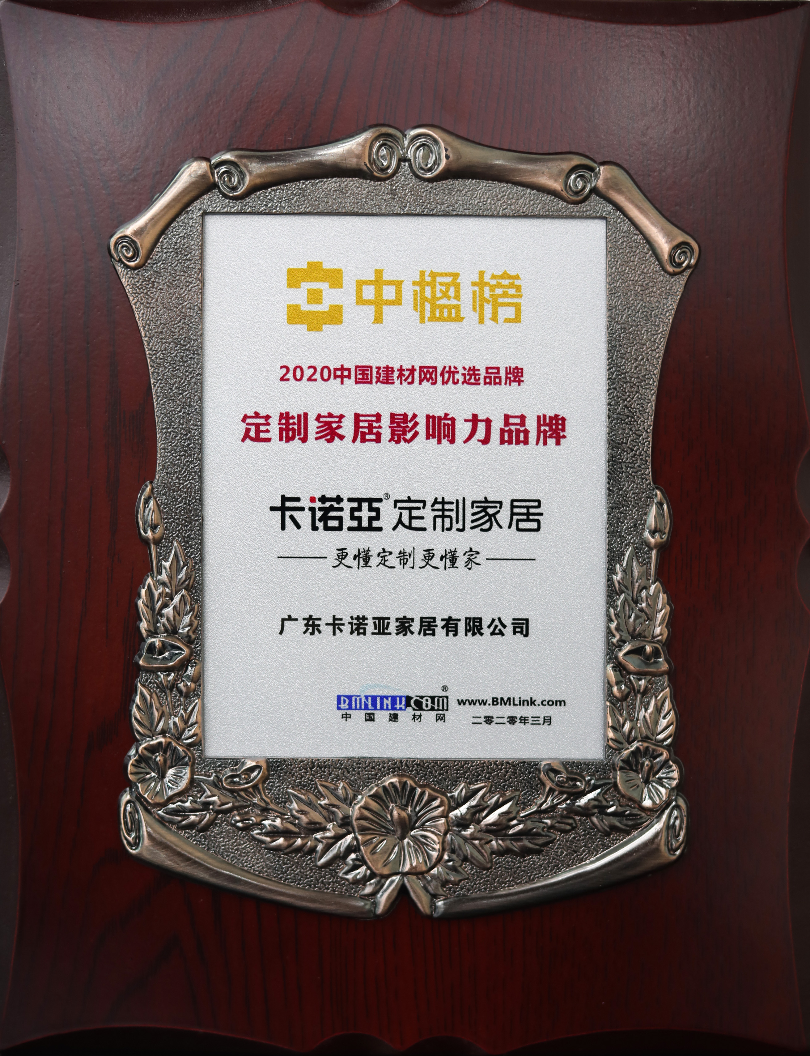 “中楹榜”甄選建材各界有分量的品牌,以中楹“中國美好生活家”的寓意,凝聚行業(yè)品牌,鼓勵、促進建材行業(yè)的創(chuàng)新與發(fā)展。本次評選活動,卡諾亞在眾多定制家居企業(yè)中脫穎而出,榮獲“中楹榜”2020優(yōu)選品牌“定制家居影響力品牌”。